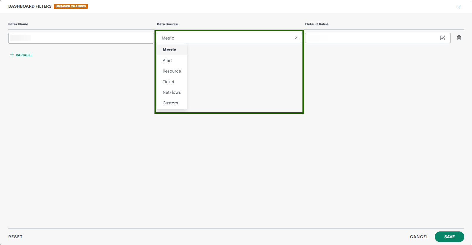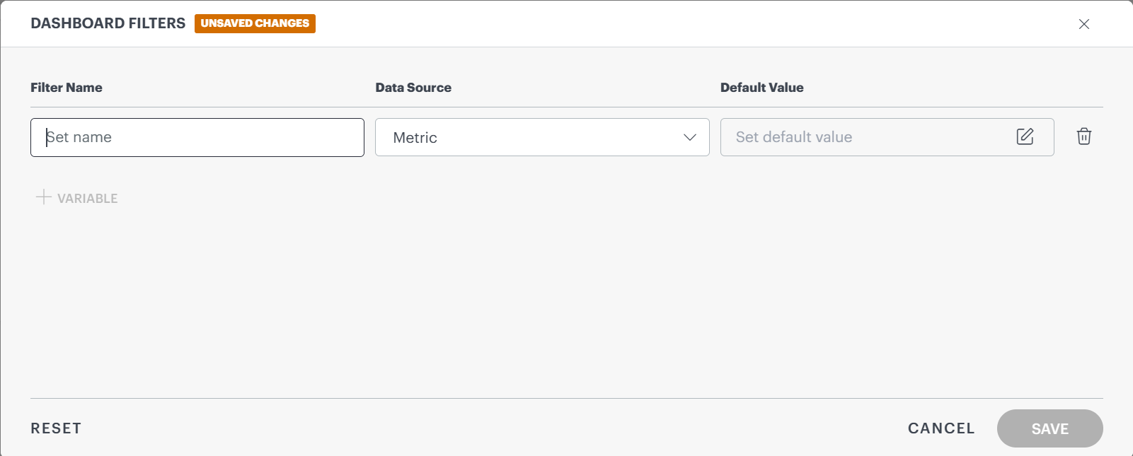 To add multiple filters, click on the + Variable button.